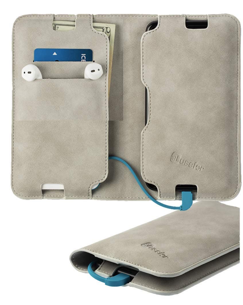 The eLusefor ultra-portable wallet charger has a slim, lightweight design and comes with a functional wallet case. It has a power capacity of 5,000 mAh and can fully charge your devices while barely taking up any space in your bag.