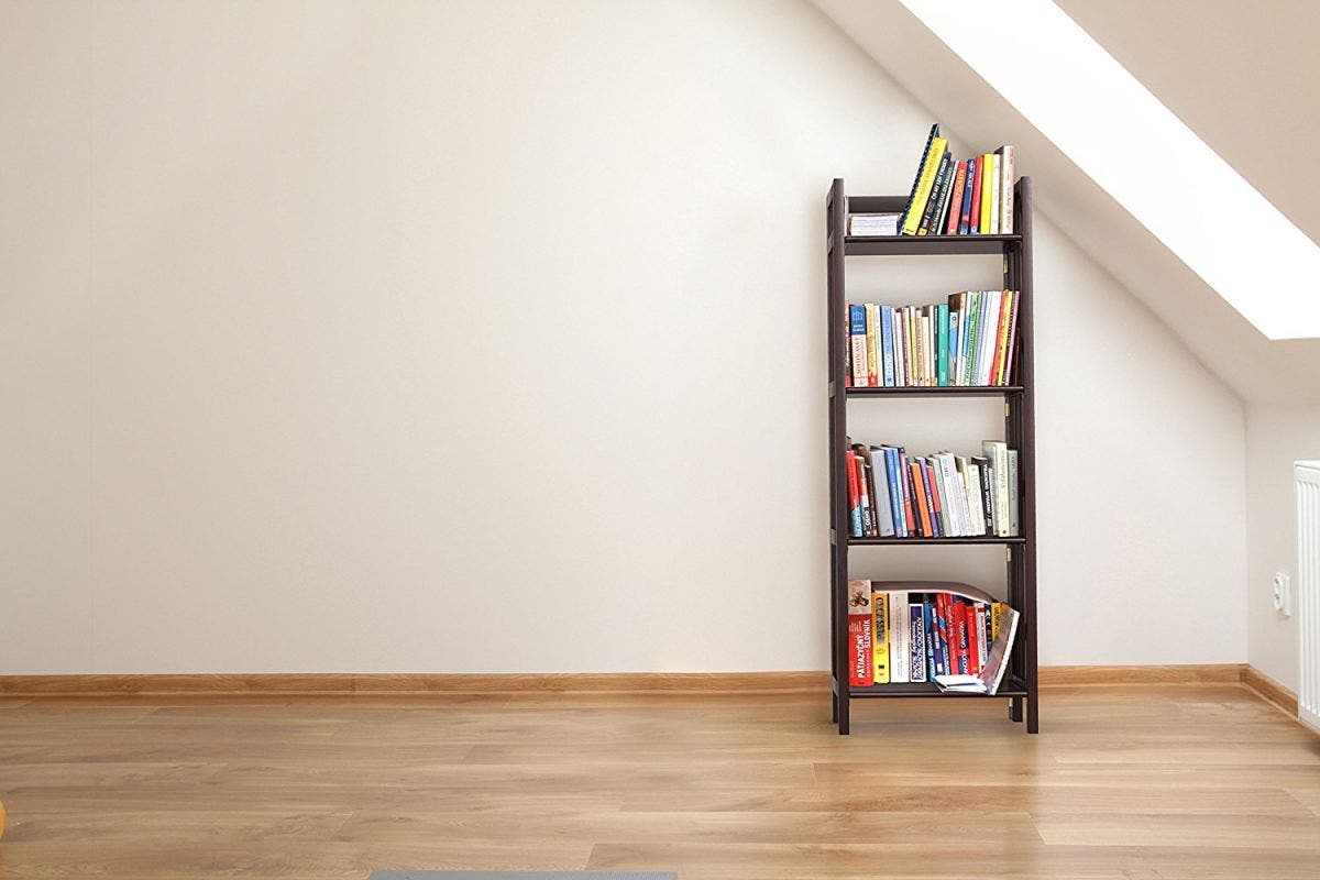 Every so often, though, you'll come across a quality piece requiring no assembly — like this fantastic folding bookcase from Stony Edge. It's made of 100 percent real wood, and setup is a snap — literally. You don't have to worry about loose screws, missing bolts, jagged pieces or any of the other nonsense that oftentimes comes along with building a bookcase.
