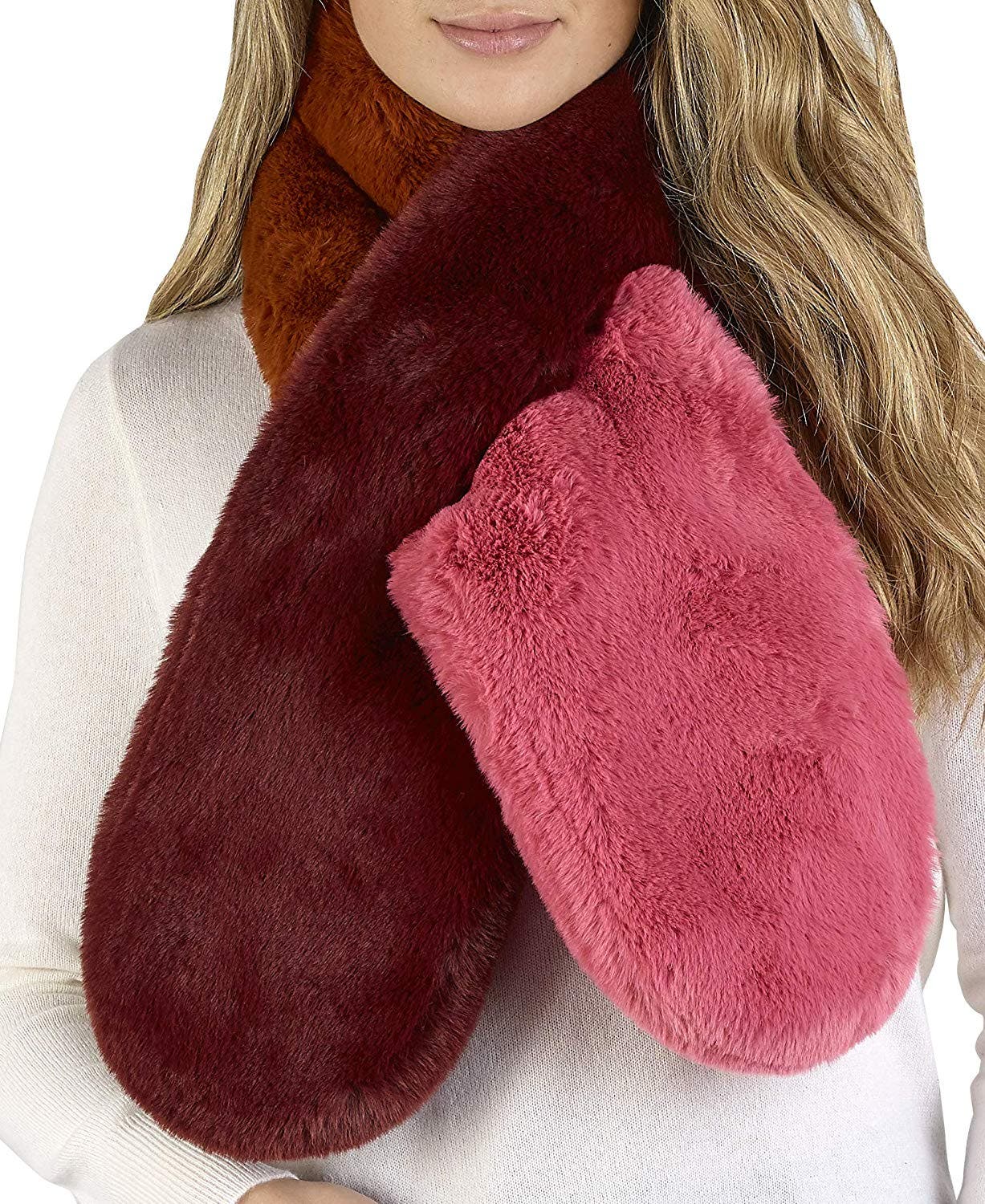 This warm, cozy cold weather accessory is like a scarf, but without the hassle of having to tie it! The simple pull-through design stylish, super plush and easy to wear. Pair your faux fur pull-through with a blouse- T-shirt and jeans or your favorite winter coat — it goes with everything! Multiple colors are available.