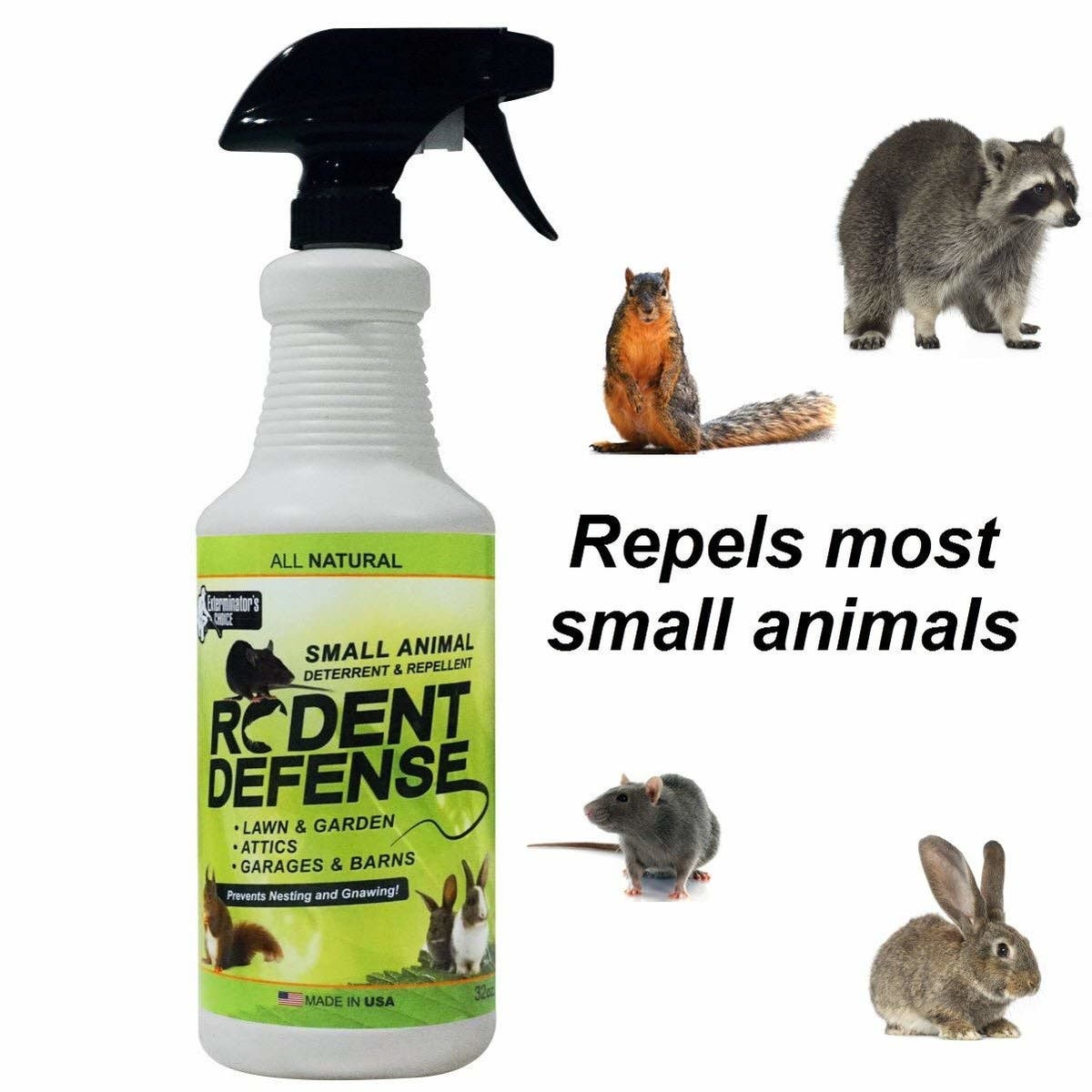 If rodents, raccoons and other pesky pests are getting into your trashcans or tearing apart your recycling bin, this small animal repellent spray may be just what you need. It helps prevent nesting and gnawing, so you can use it attics and garden areas as well. Use only as directed.