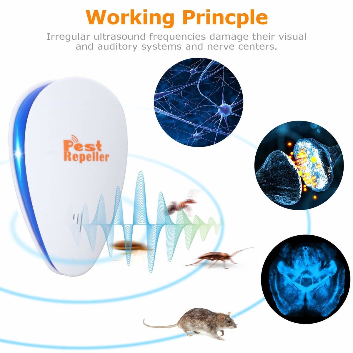 Each pest control repellent device provides coverage for an indoor area of up to 1,600 square feet. Just plug in the device, and it automatically emits an ultrasonic sound that's inaudible to humans and household pets. This sound sends mice, insects and other types of critters running, and most customers notice the pest-free difference within 2-3 weeks.