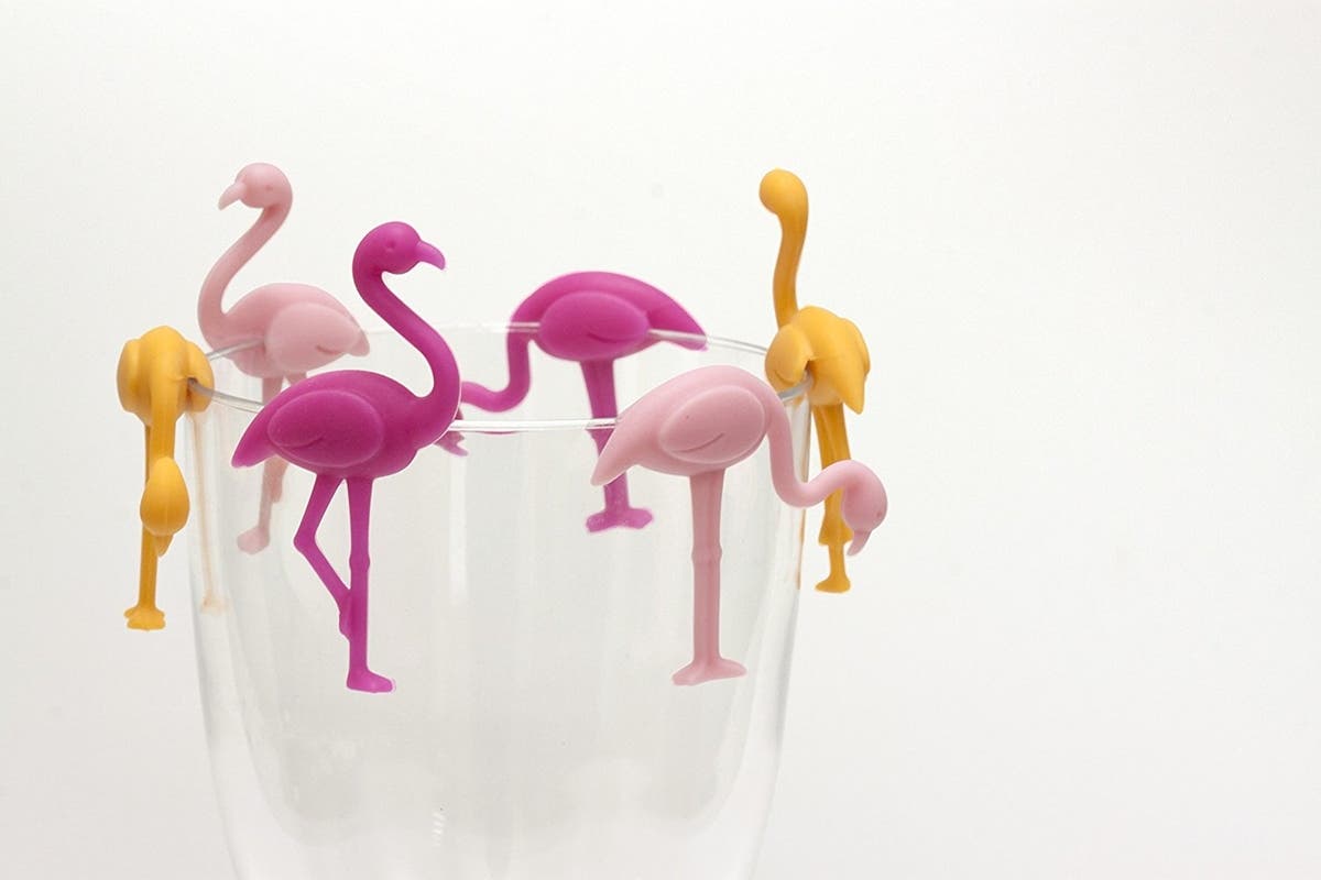 Birds of a feather drink together, but telling their glasses apart can be a challenge! That's why these easy slip-on silicone flamingo drink markers are so great — they're a cute, colorful way to mark your drink and avoid any awkward mix-ups.