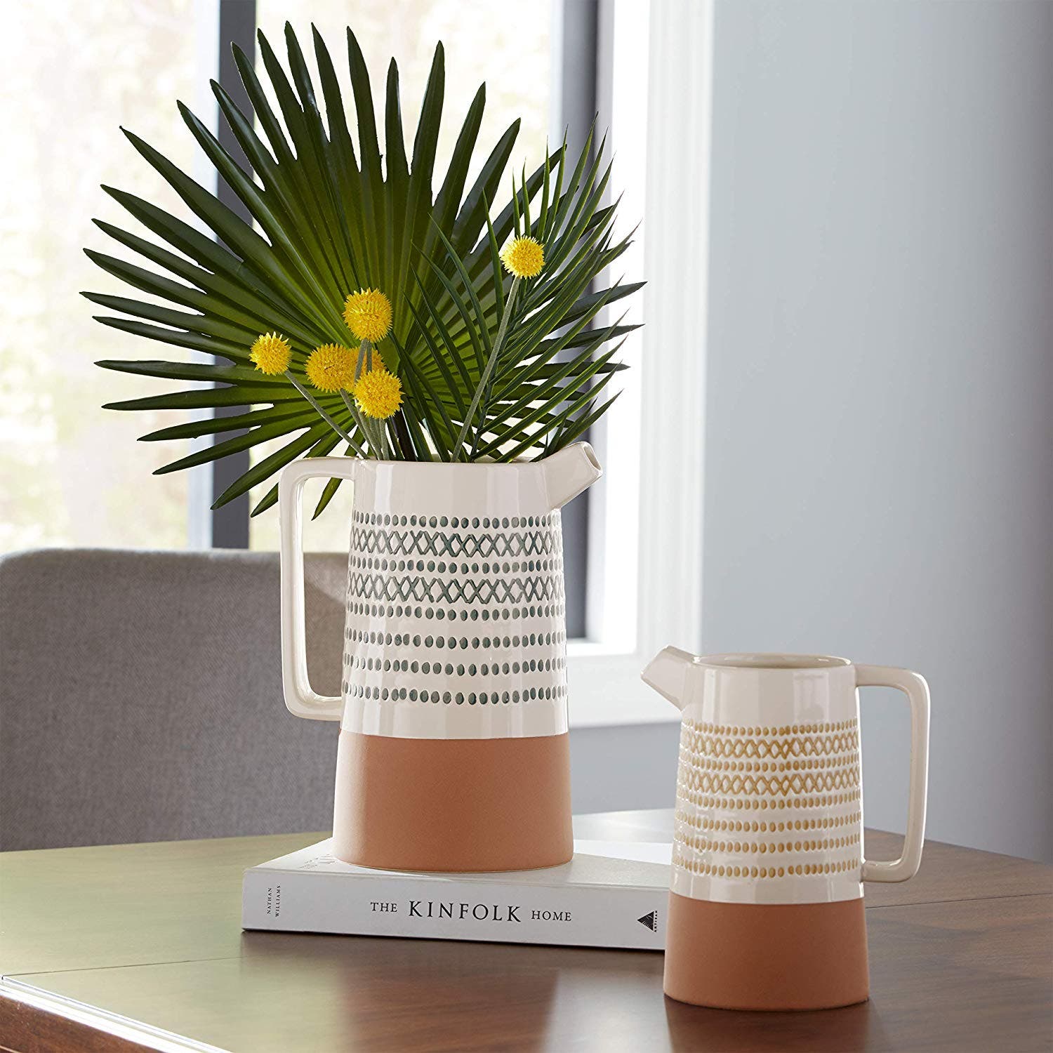 The vases are 9.5 and 7.6-inches tall, and they exemplify the simplicity and style only 100 percent stoneware can provide. Use them to display freshly cut flowers, turn them into succulent planters or just enjoy them as standalone Southwestern style pieces.
