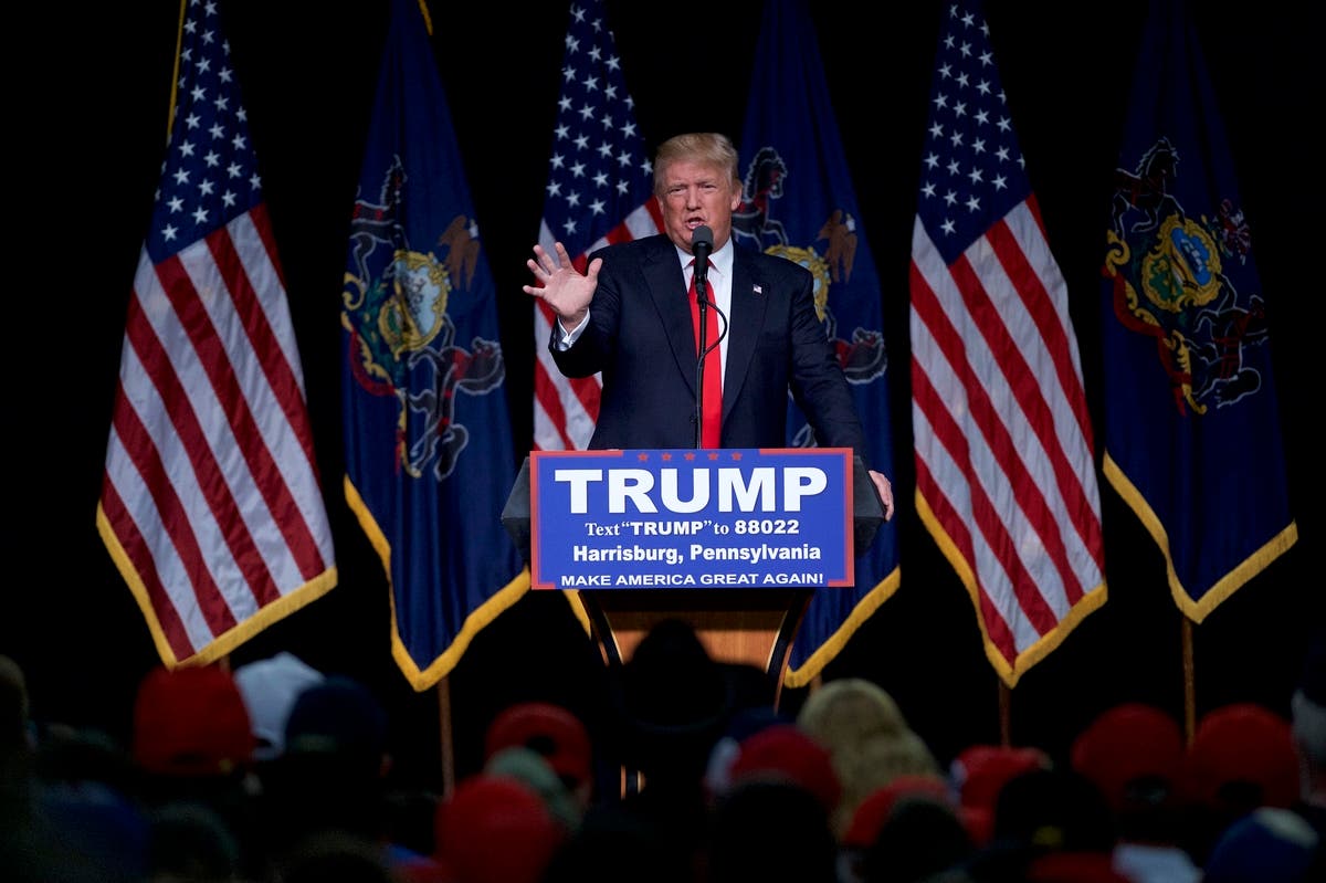 Photo of Trump in Harrisburg, PA in 2016 via Mark Makela Stringer/Getty Images News/Getty Images