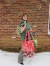 Bold colors and prints are part of her design repertoire. She tends to follow current trends on Etsy or the suggestions of her friends and fellow artists. “I don’t think I have a signature style yet,” she said. “I really like to find challenges. It’s very difficult to give yourself a challenge. My favorite thing is figuring out how something is done and figuring out new techniques myself. I like it when people request a certain bag and I get to figure out how to meet their needs.”