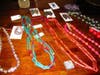 Many of her chunky necklaces and dramatic dangle earrings look heavy but are refreshingly lightweight. “People usually like my jewelry because it’s so light,” she said. “When they lift it they are surprised by how light it is.”