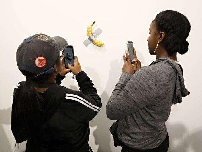 "Performance artist" Rabunzel has re-created the infamous banana taped to a wall art that sold for more than $100K, animal advocates say.