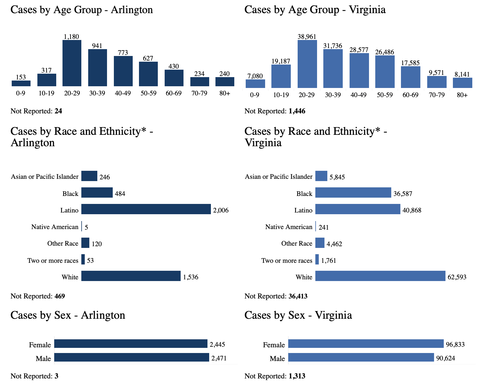 VDH breaks down the number of cases and deaths in Arlington by age, race and ethnicity. The breakdown by age is as follows: