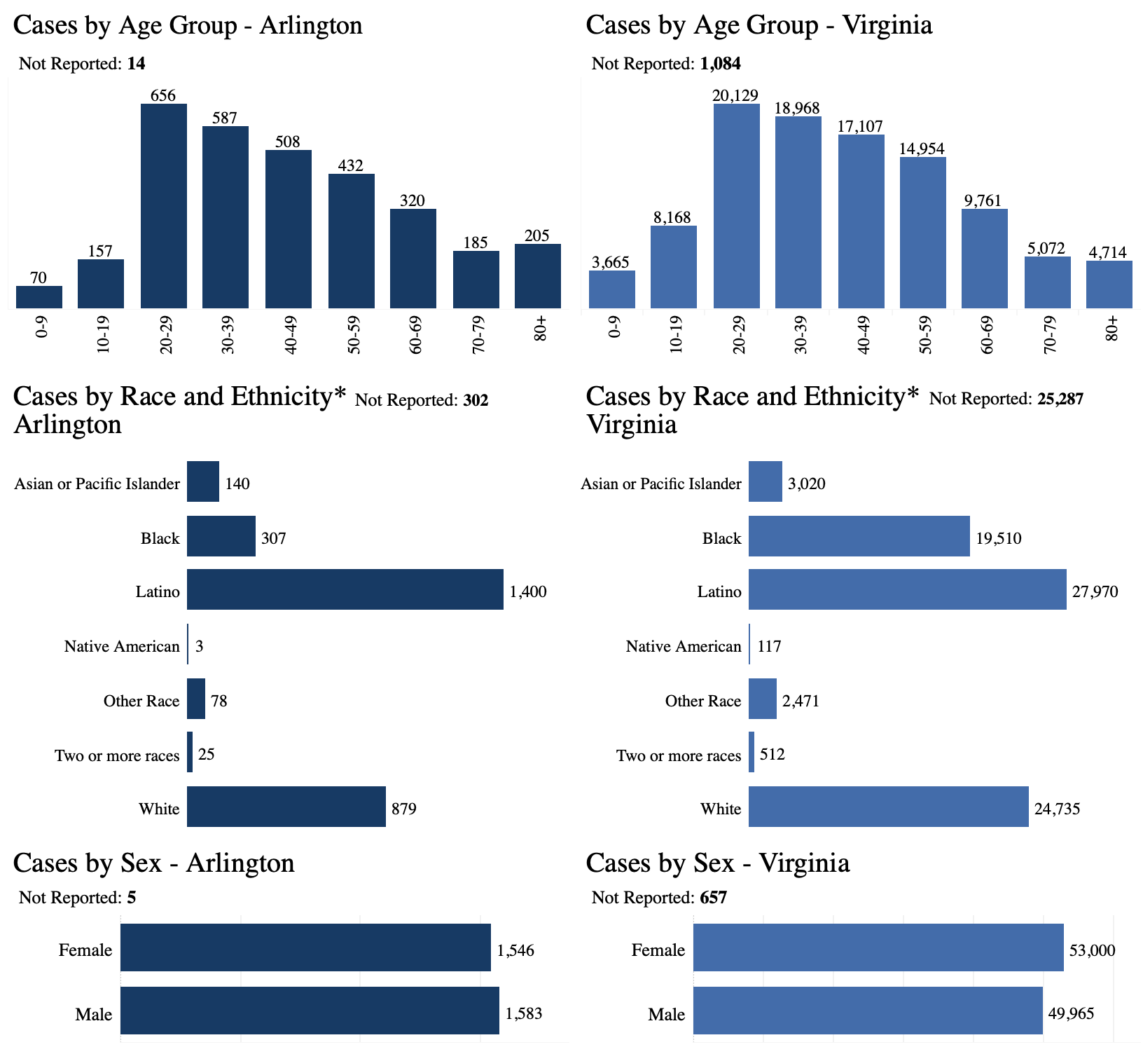 The department of health breaks down the number of cases and deaths in Arlington by age, race and ethnicity.
