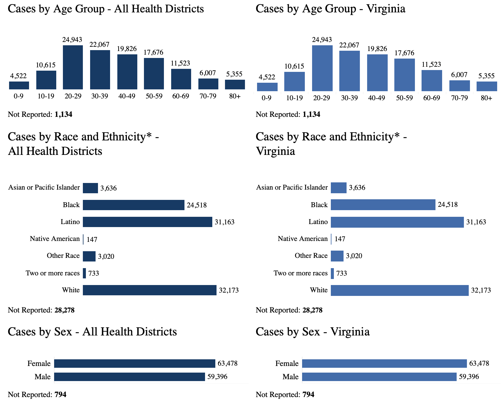 As of Thursday, there have been 123,668 total cases statewide, according to data reported by the Virginia Department of Health. In Virginia, there have been 2,652 coronavirus-related deaths to date. There have been a total of 9,741 hospitalized COVID-19 patients.
