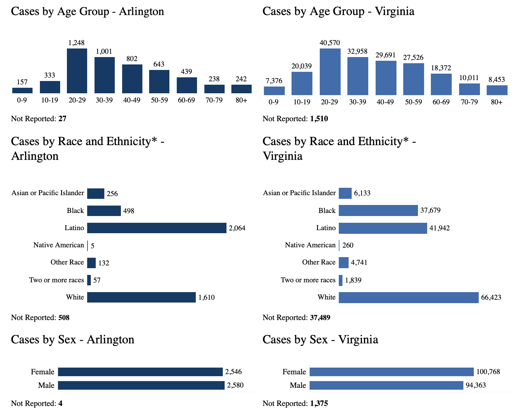 VDH breaks down the number of cases and deaths in Arlington by age, race and ethnicity. The breakdown by age is as follows: