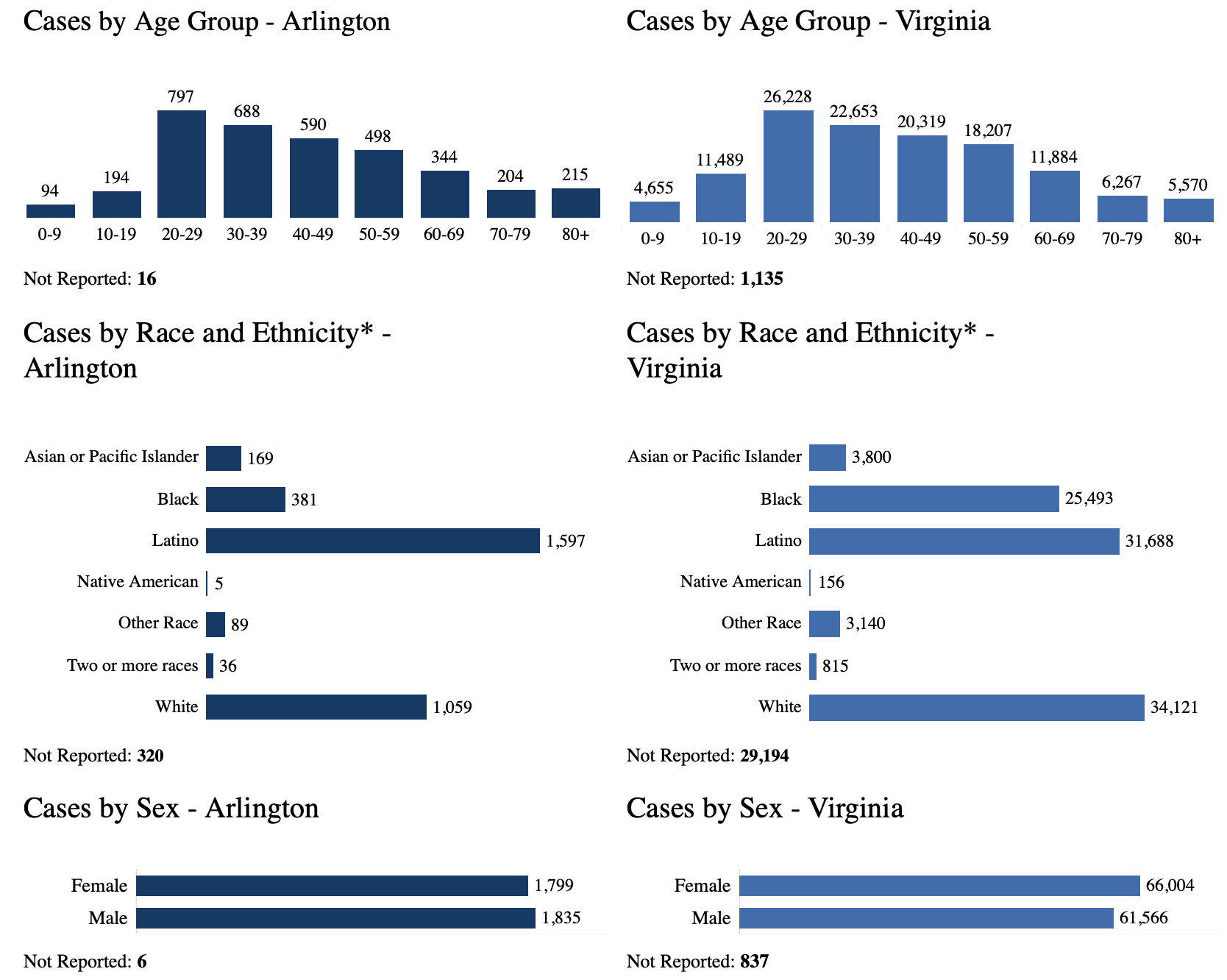 The department of health breaks down the number of cases and deaths in Arlington by age, race and ethnicity.