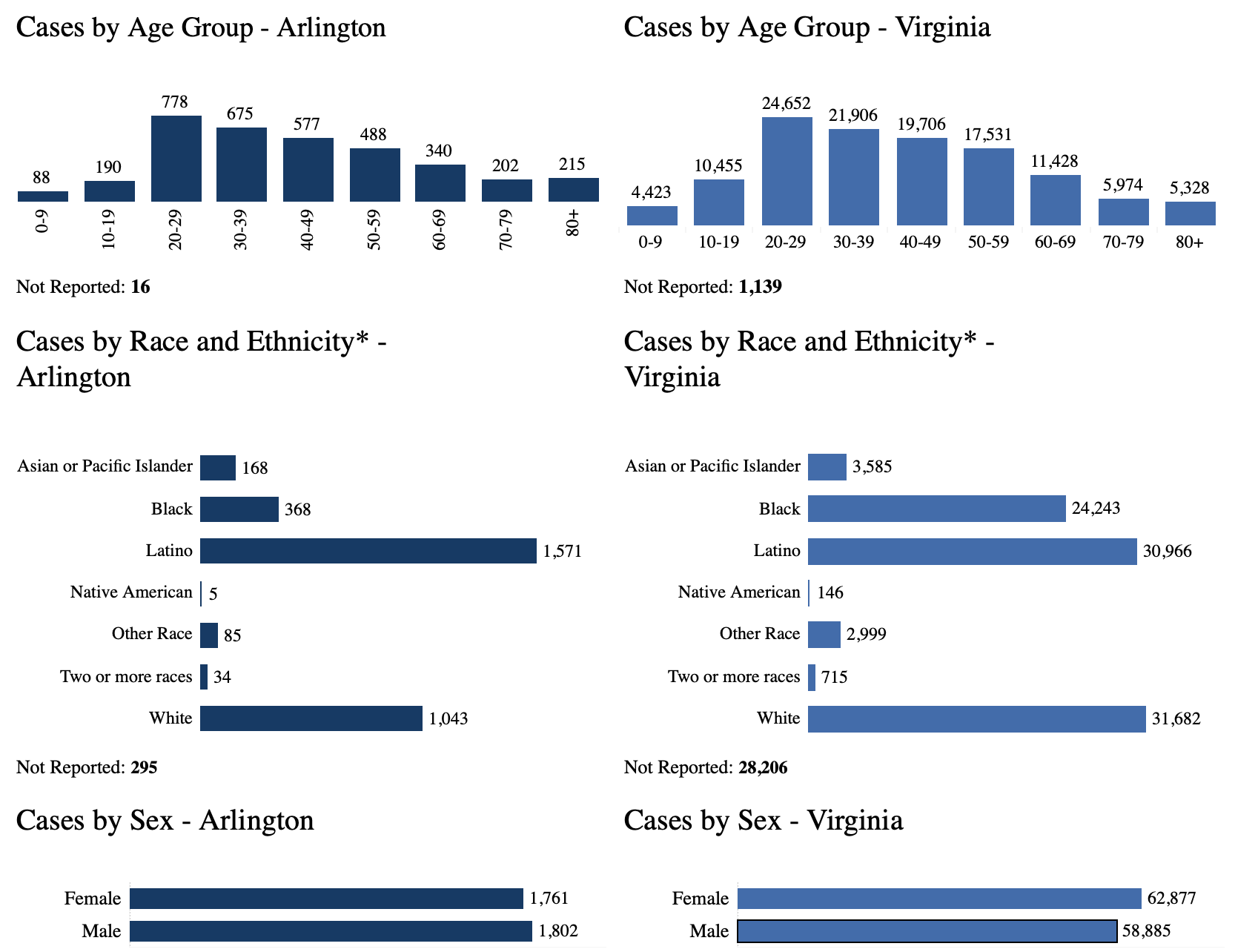The department of health breaks down the number of cases and deaths in Arlington by age, race and ethnicity.
