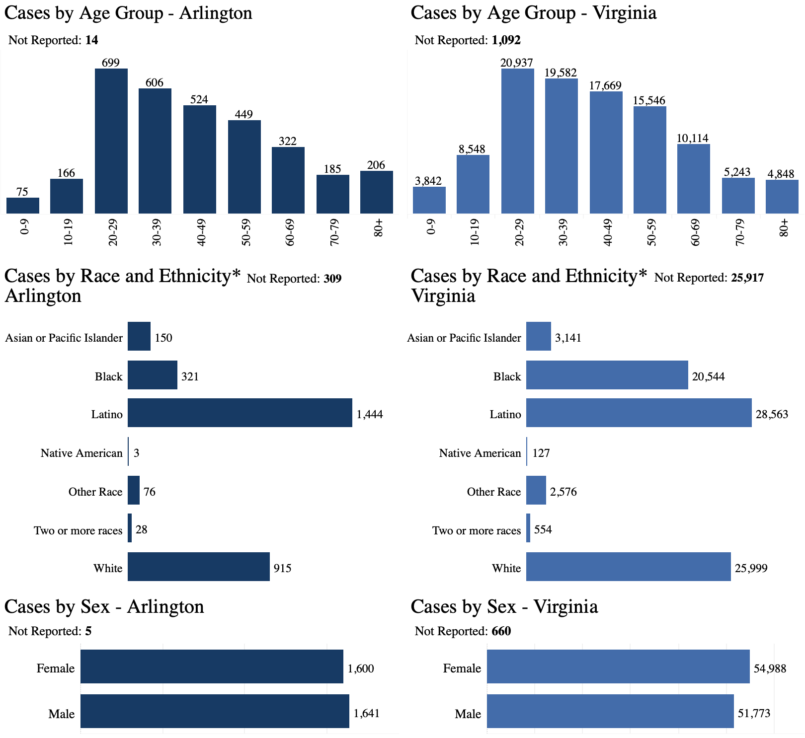 The department of health breaks down the number of cases and deaths in Arlington by age, race and ethnicity.