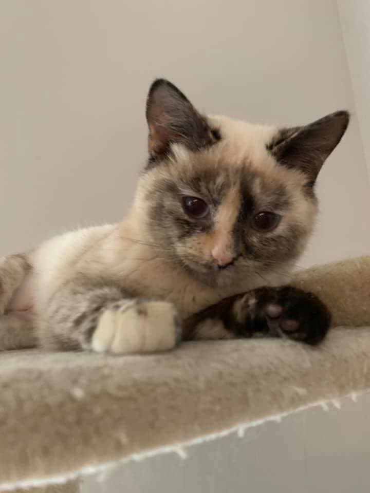 This is our kitten Angelica Schuyler. Part Siamese, part Tortoise Shell and totally adorable. (Sharon McKenna Gundrum)