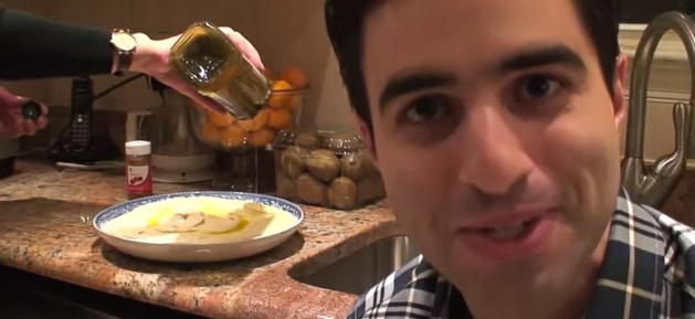 In the video, Munasif is seen pouring hummus on everything from pumpkin pie to Lucky Charms.