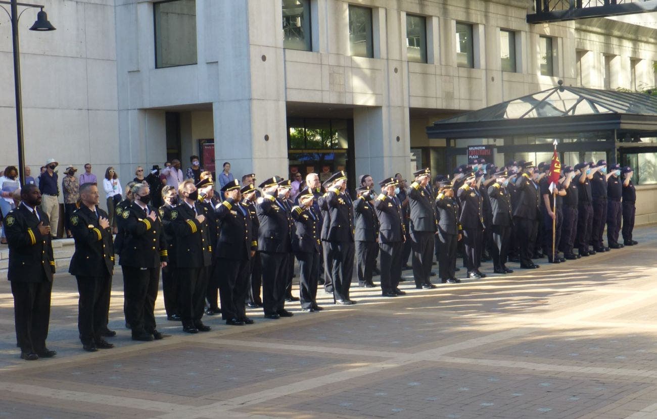 At 9:37 a.m., the county held a moment of silence to remember the lives lost on Sept. 11. With several other 20-year anniversary events scheduled for Saturday, the county chose to hold its official remembrance of the lives lost on 9/11 on Friday.