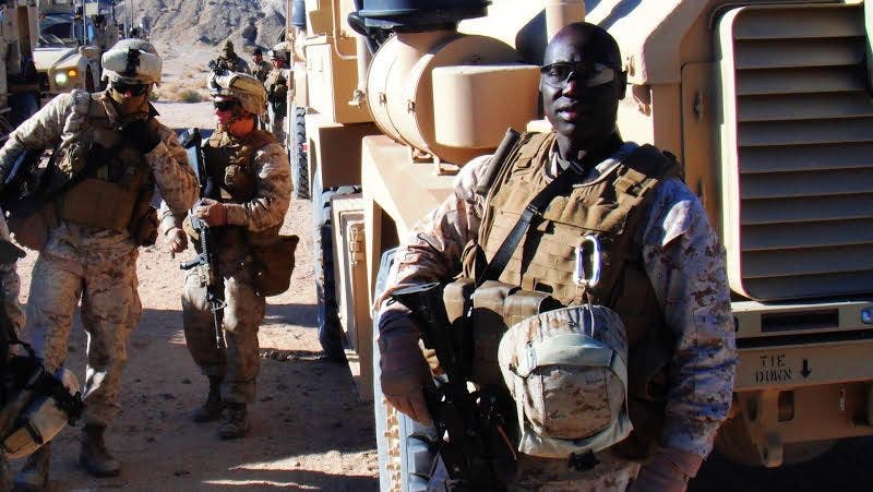 Ugandan immigrant and Marine Corps veteran Jimmy Ochan is featured in the new ad.
