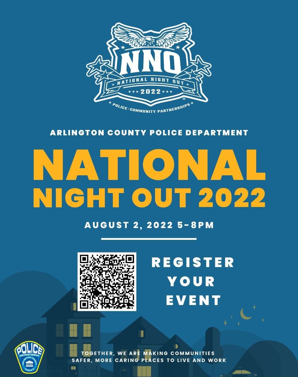 Registration is free and provides police officers and Arlington County leaders and other representatives an opportunity to attend events. Residents should register by Friday, July 22. Police cannot guarantee attendance at events registered after the deadline.