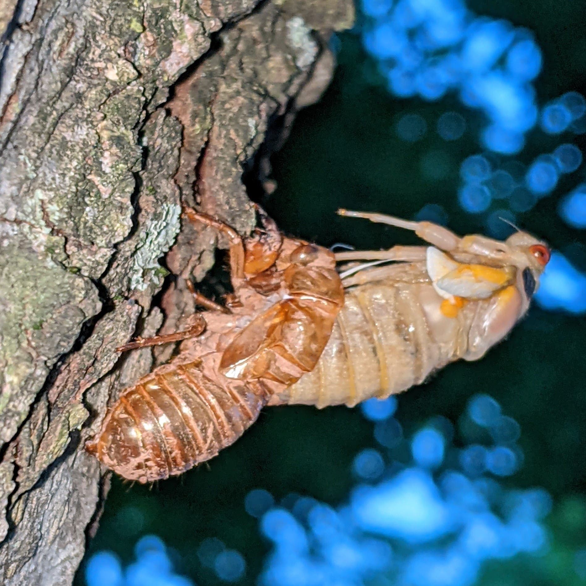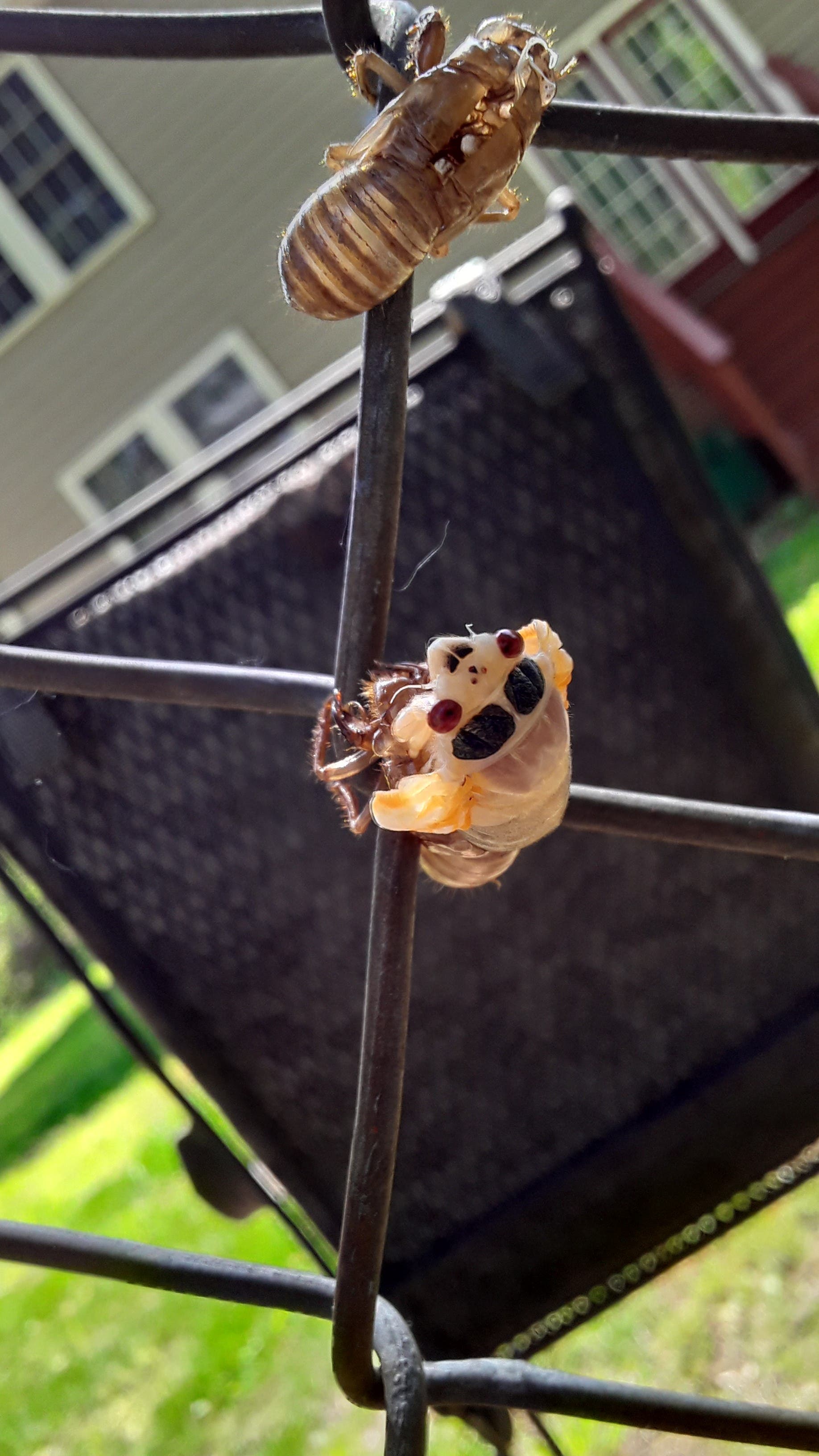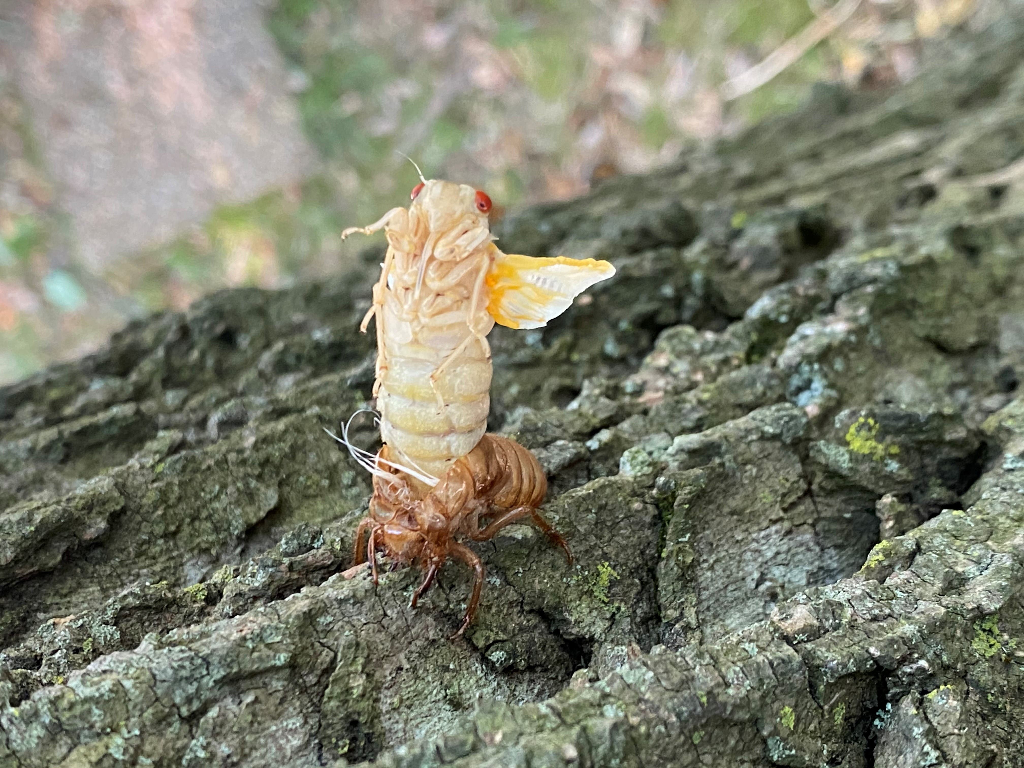 Cicada emerging from exoskeleton in Centreville on May 25. (Courtesy of Michelle Shapiro)