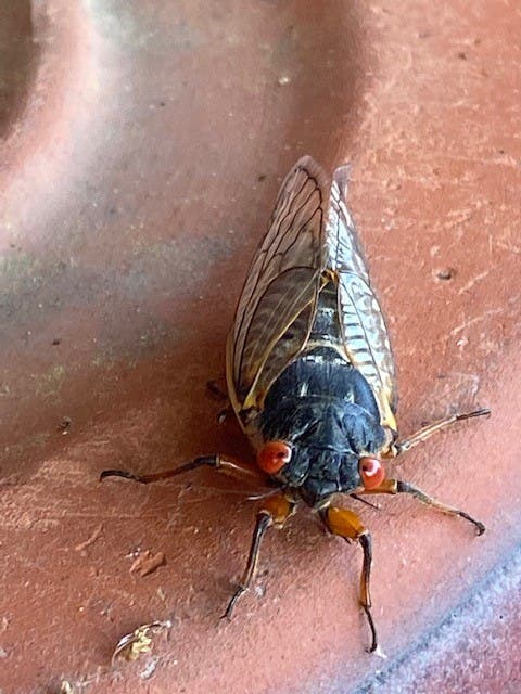 Photo of a cicada taken in Kimberly Connell's front yard in Falls Church on June 10. (Courtesy of Kimberly Connell)