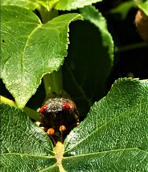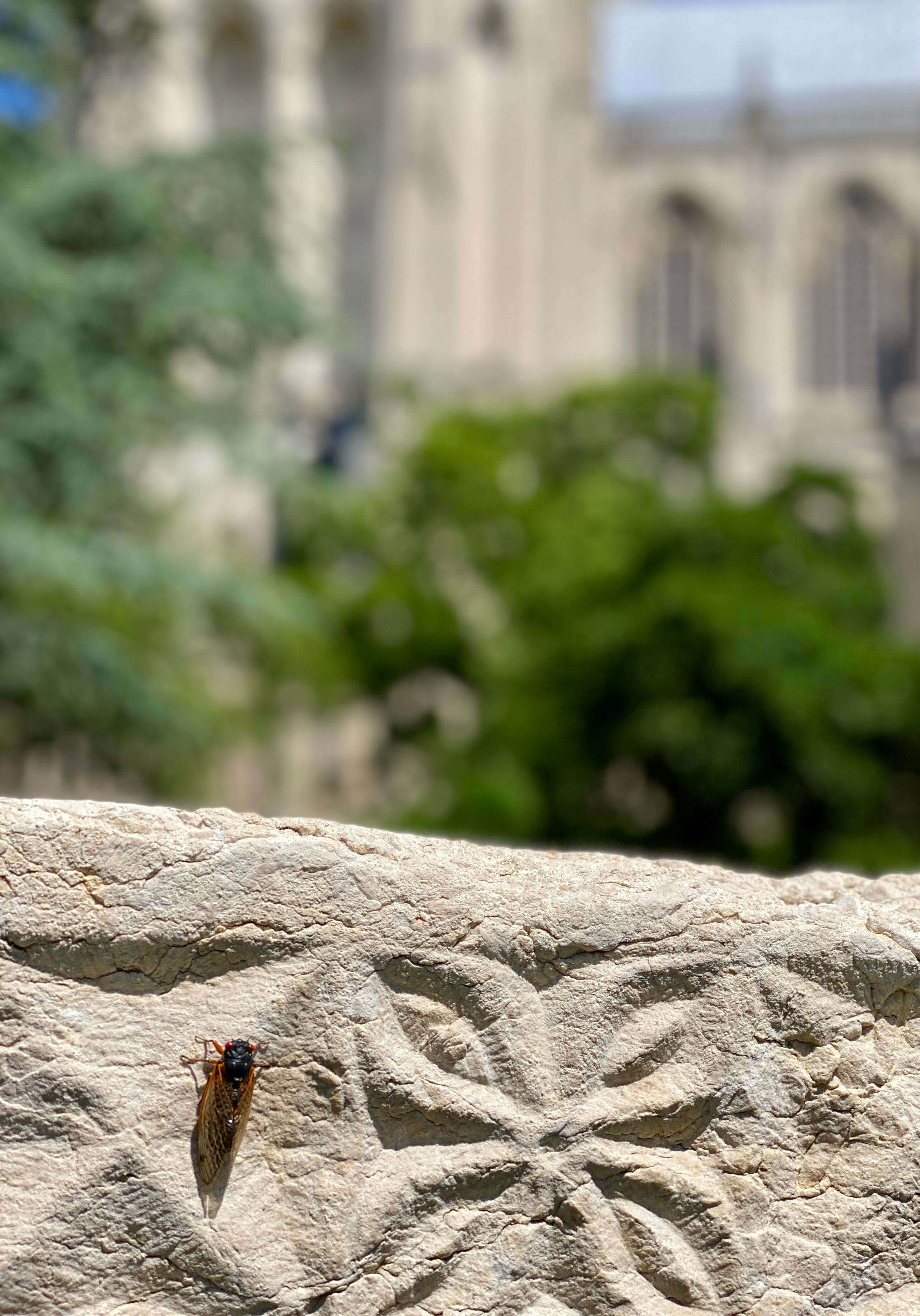 Photo of cicada at the National Cathedral in D.C. on May 21 inside the Bishop’s Garden. (Courtesy of Faith Angove)