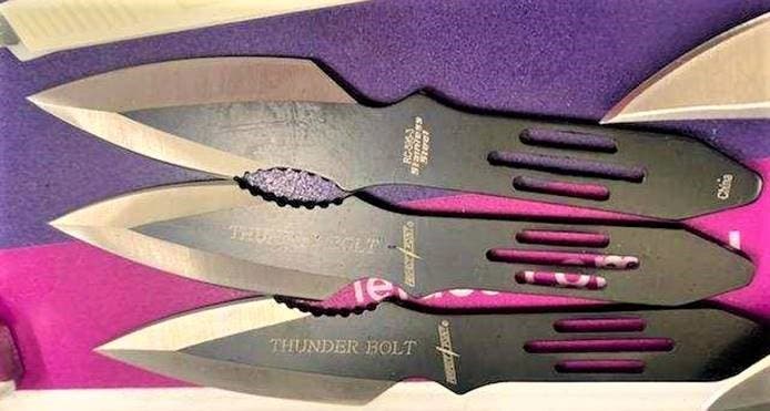 The man was carrying nine disposable scalpels, eight folding locking-blade knives, three martial arts throwing knives; one dagger; one switchblade; and one pair of brass knuckles.