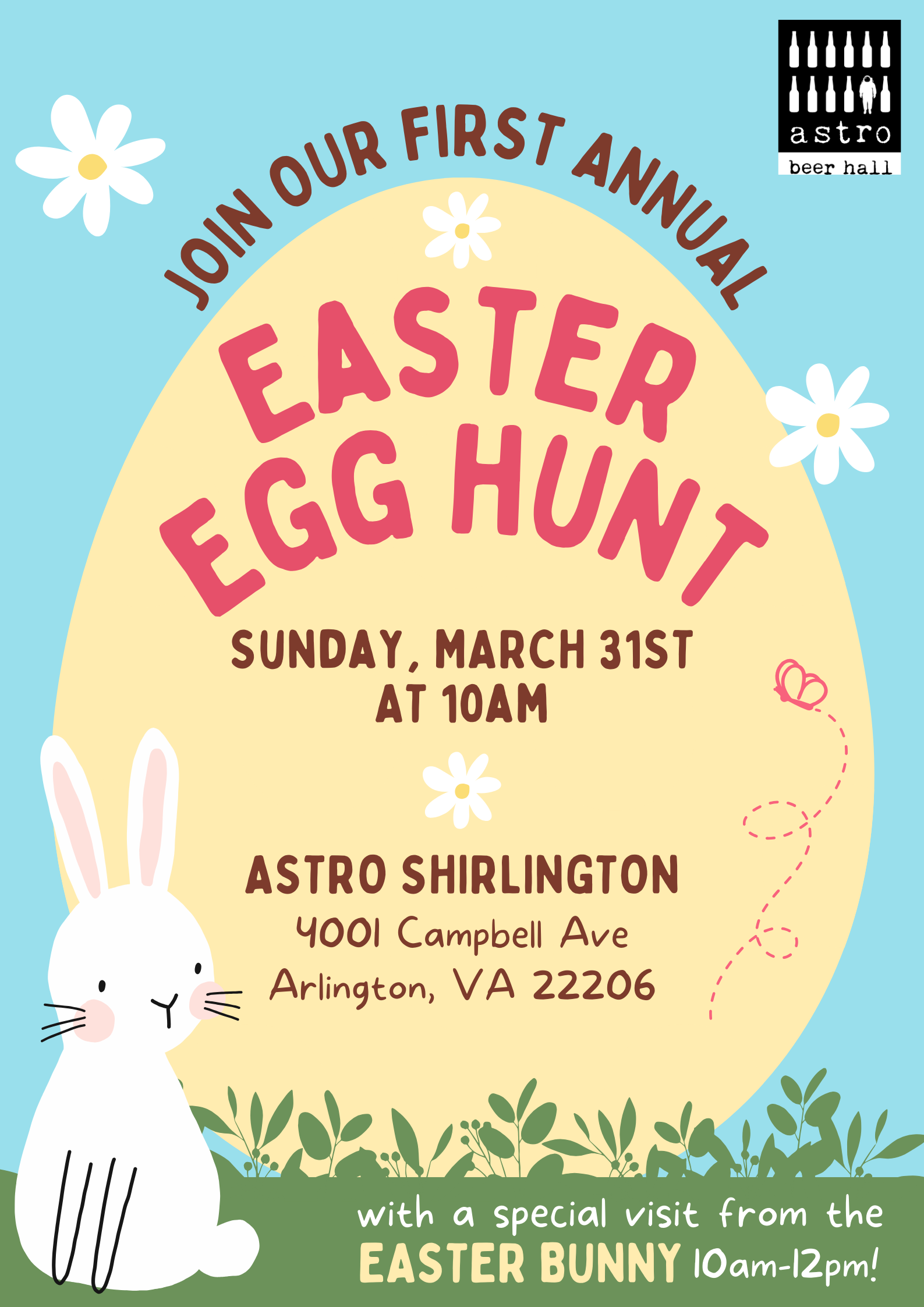 Families are invited to participate in the first annual Easter Egg Hunt hosted by Astro Beer Hall in Shirlington.