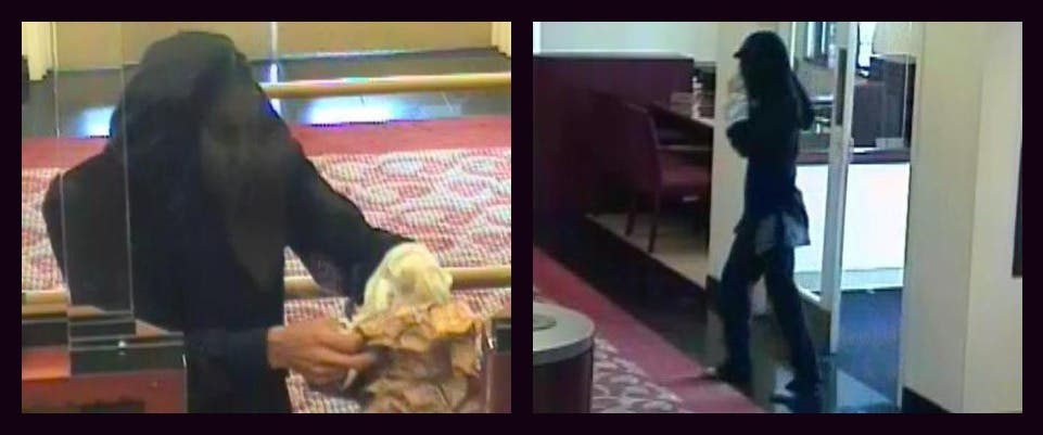 - Monday, July 6, Arlington.: The subject was described as approximately 5’5” tall with a slender build. He was described as wearing a black cloth around his head and face, a black shirt, black pants, white socks with holes, and no shoes. On Monday, at approximately 4:59 p.m., a man robbed the Capital One Bank at 4700 Lee Highway. He entered the bank, approached the teller and verbally demanded money while armed with a pair of scissors as a weapon, the FBI said. After receiving an undisclosed amount of money, the subject fled the bank on foot.