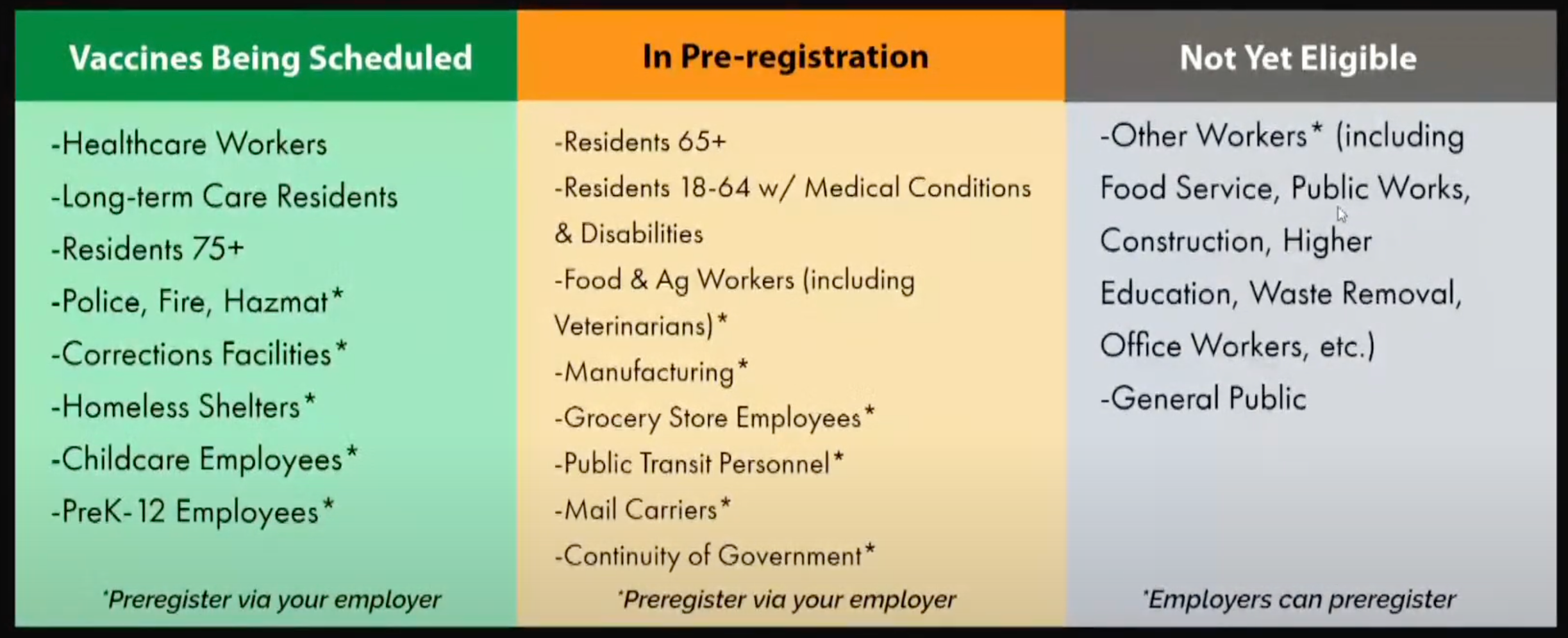Varghese confirmed that it would likely take until the March-April timeframe before the county had vaccinated enough people in the Phase 1b groups for it to consider opening up registration for other groups. He added that it all depended on the county receiving additional vaccines.