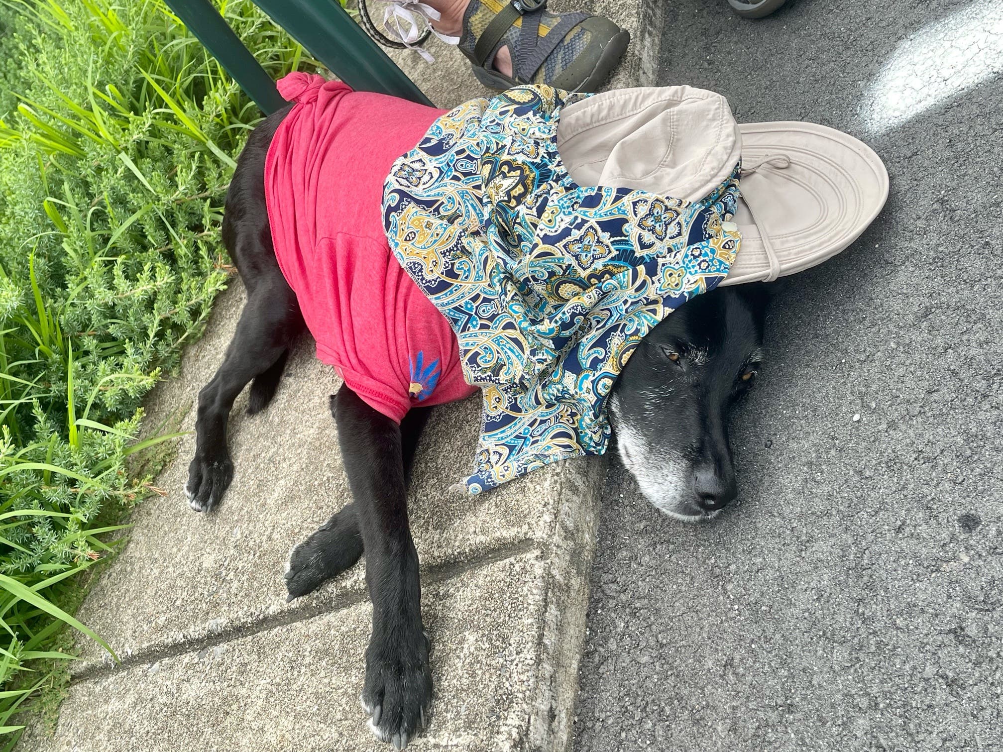 Midnight, age 12, was adopted by Elizabeth Humphrey from the Animal Welfare League of Arlington in June 2010. Here, the sermon is running long at Baptist lakeside service in liquor store parking lot on Sunday, Aug. 15, at Lake Lure, North Carolina.