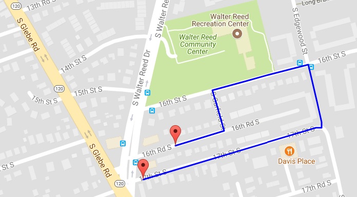 - Continue southbound on South Walter Reed Drive to 16th Street South