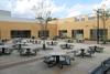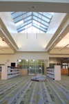 The new school has a central town hall area for students and teachers to gather between the cafeteria and one of two courtyards. Wakefield's three stories are above ground in the academic wing; the athletic section is two stories tall plus a third level below.