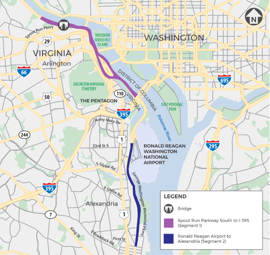 Work will begin on the section between Spout Run Parkway and I-395. To manage traffic, the NPS will implement the following schedule: