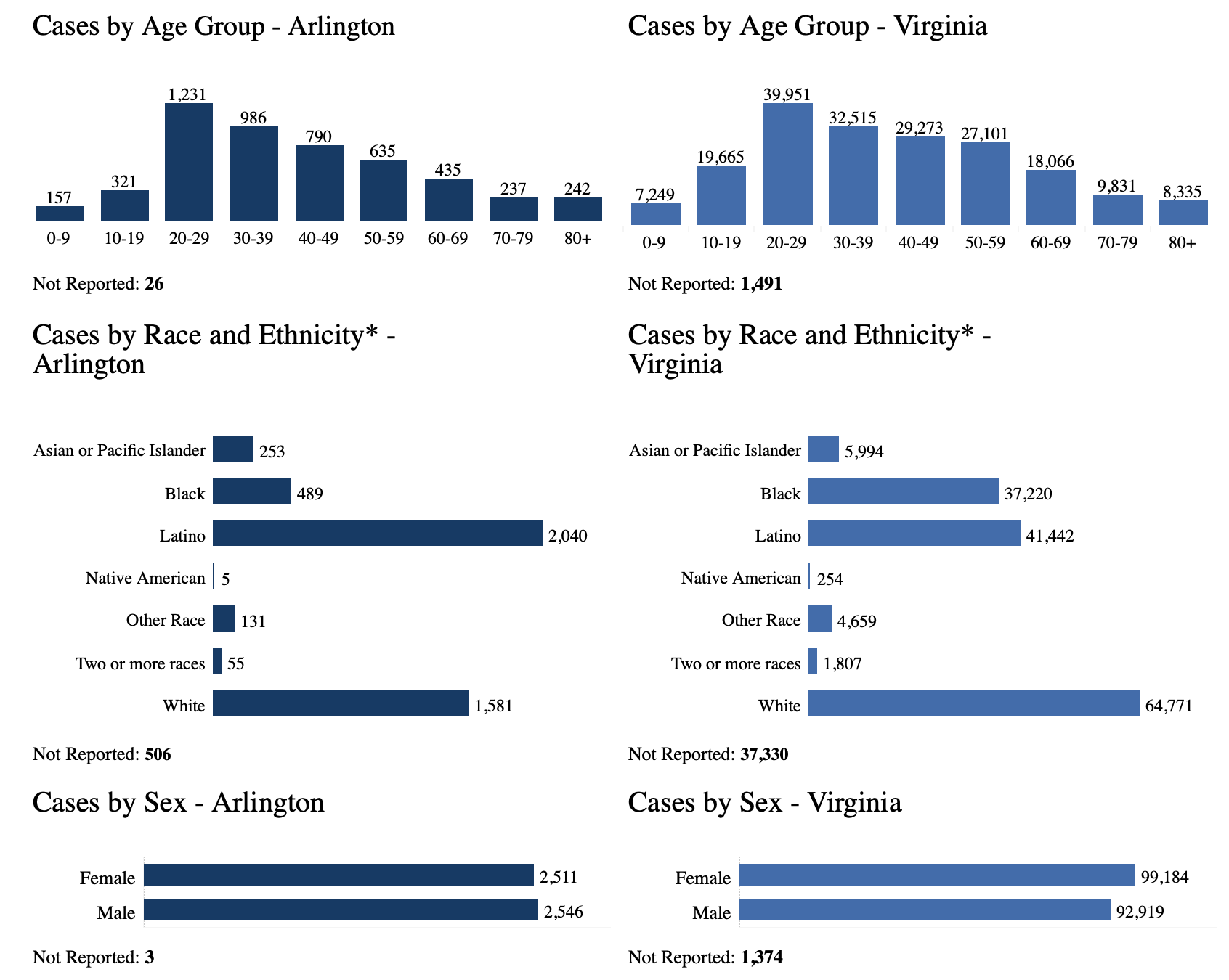 VDH breaks down the number of cases and deaths in Arlington by age, race and ethnicity. The breakdown by age is as follows: