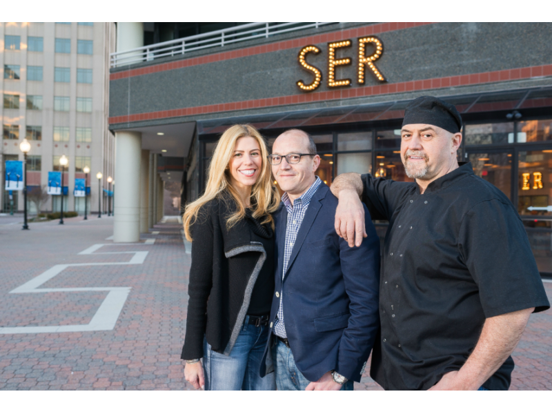 PHOTO (left to right) Christiana Campos-Candon, husband and restaurateur Javier Candon, and award-winning chef Josu Zubikarai pause for a photo in front of SER. The restaurant opens its doors with a soft opening on Thursday through next Wednesday, March 11.