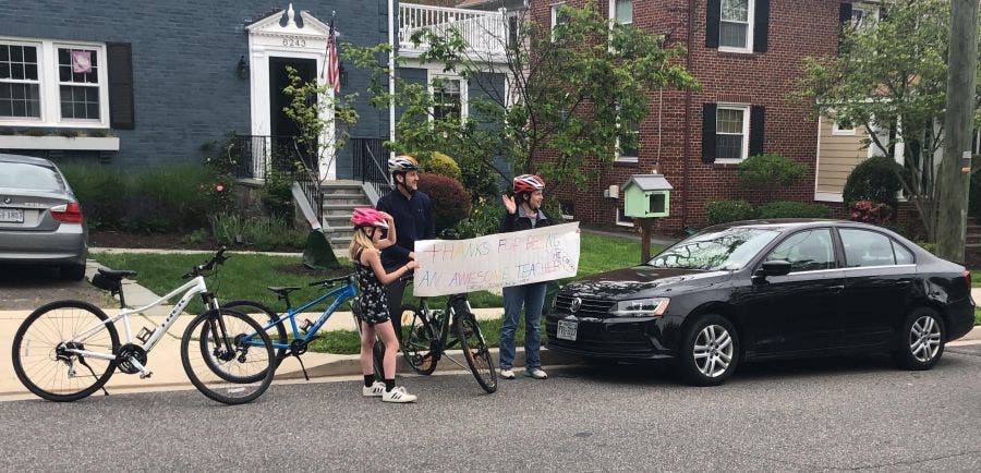 Arlington County students and their parents drove by their third-grade teacher's house to thank her during Teacher Appreciation Week.