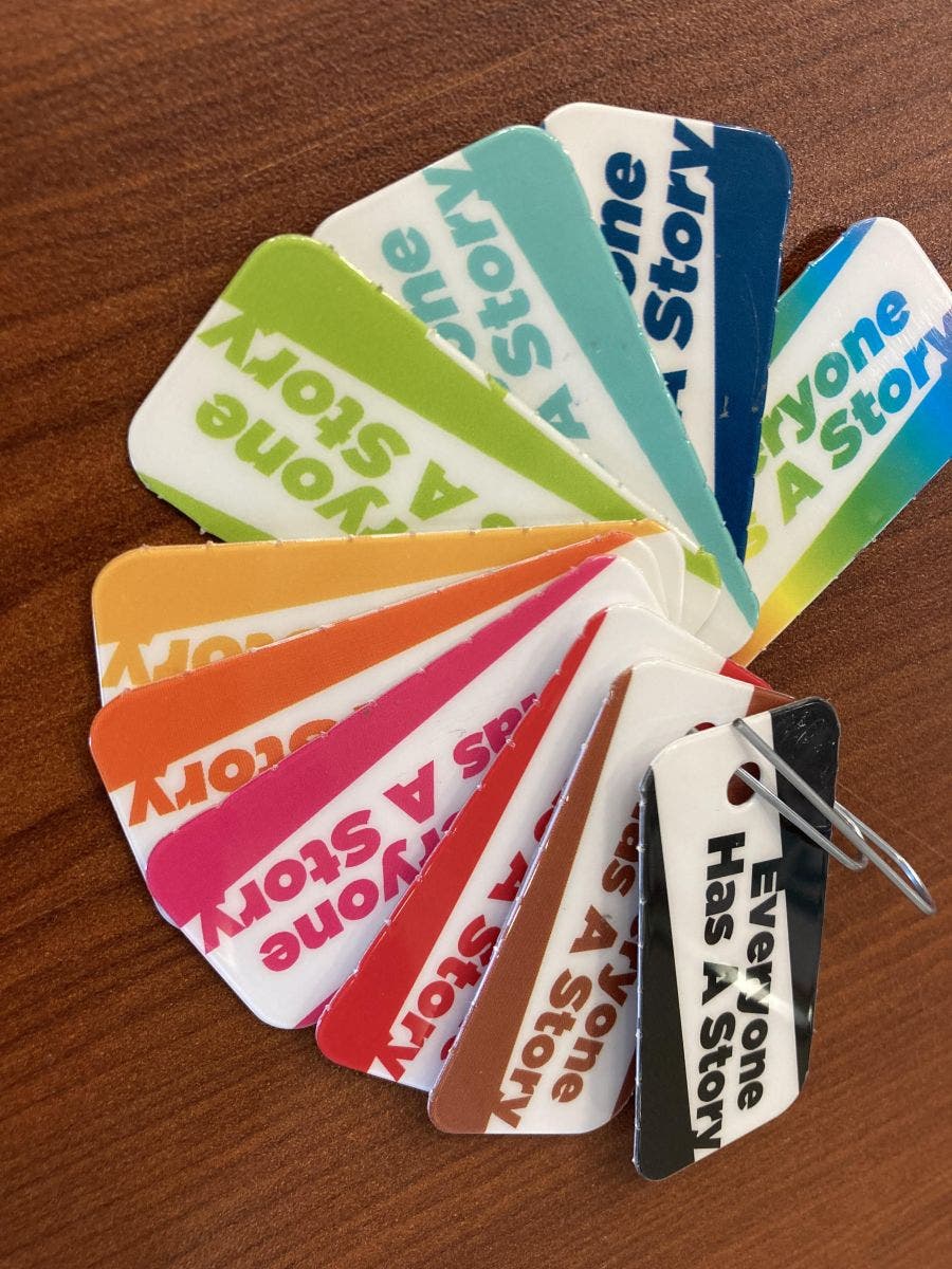 Boykin asks how much a library card costs. “It’s absolutely free,” Ruiz tells her. Plus, residents can pick a library card from a variety of colors. Arlington Public Library no longer requires all library users to hold the same red library card.