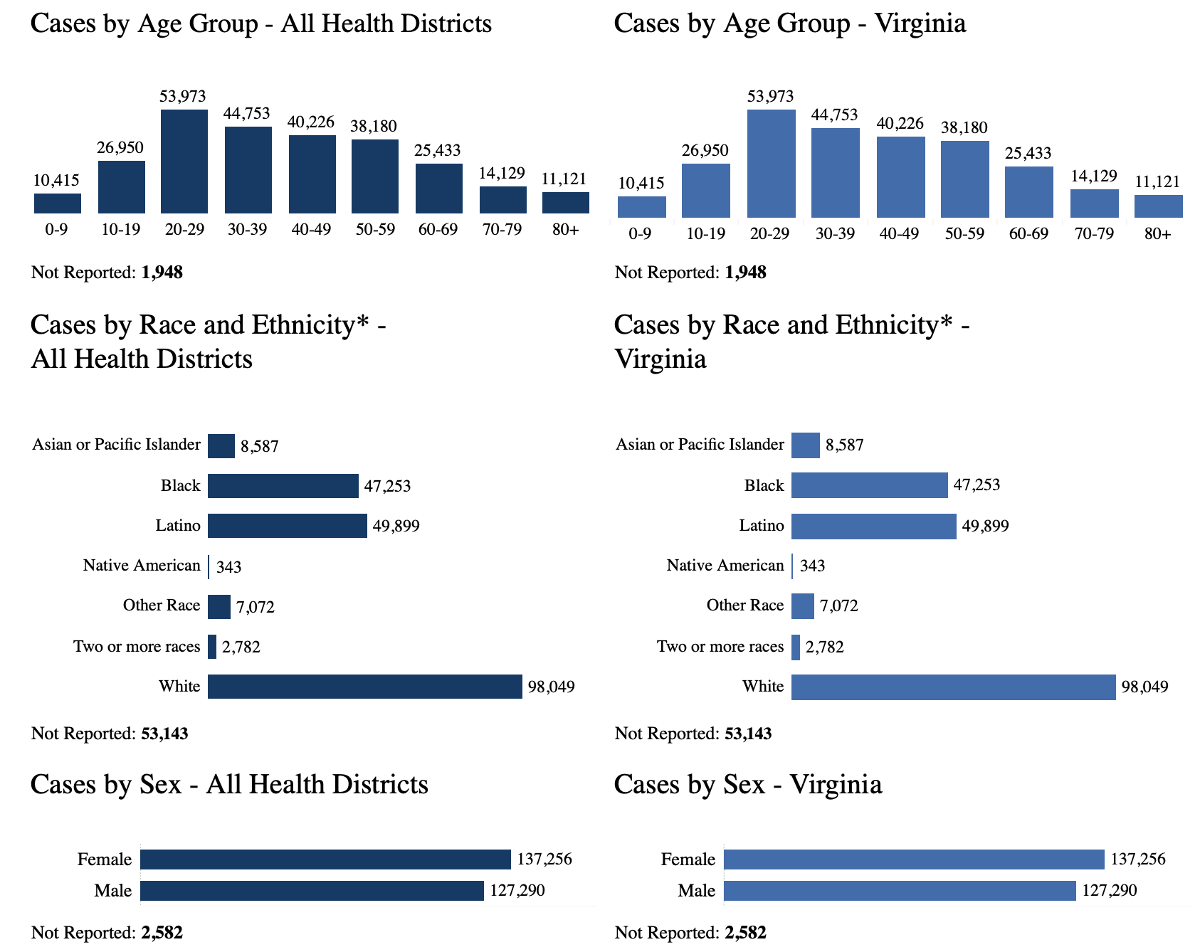VDH breaks down the number of cases and deaths in Arlington by age, race and ethnicity. The breakdown by age is as follows: