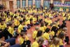 A flock of youngsters dressed in yellow waited eagerly in the Tuckahoe Elementary School lobby Tuesday morning for a few special guests.