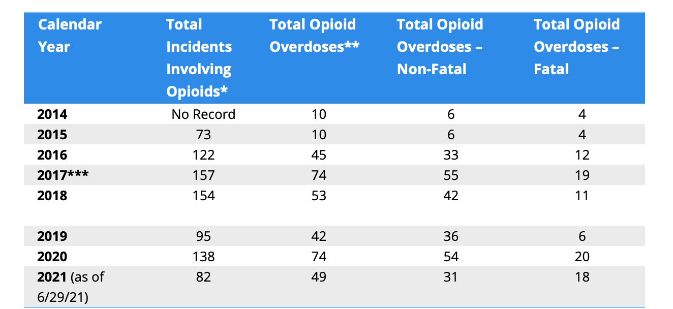 *All incidents involving heroin (Overdoses, Possession and Distribution Cases