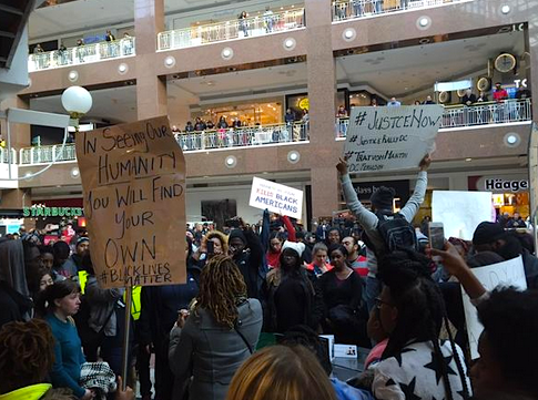 Some protesters were part of a “die-in,” lying down on the floor of the food court for four-and-a-half minutes as a way to protest Brown’s body lying on the ground after he was shot for more than four hours, The Washington Post reported.