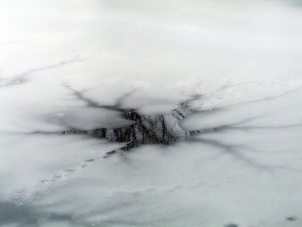 - Beware of ice covered with snow. Snow can insulate ice and keep it strong, but can also insulate it to keep it from freezing. Snow can also hide cracks, weak and open ice.