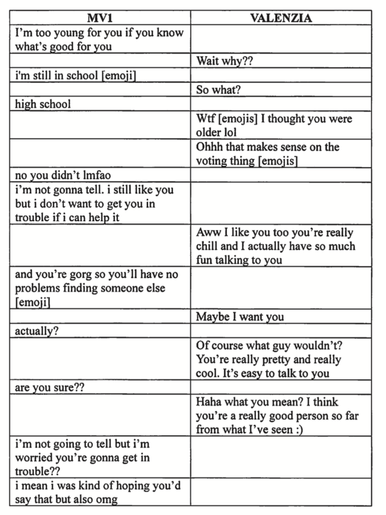 Throughout their conversations, the victim indicated she was a virgin and that Valenzia became obsessed with taking her virginity and meeting in person, the victim told investigators.