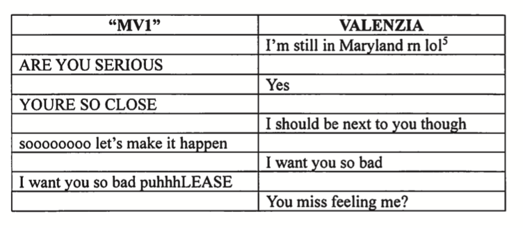 After their second meet-up, the two continued to message each other, with Valenzia repeatedly requesting nude photos from the girl, according to the report. She sent images of her bare chest and exposed vagina, and appeared naked during a Facetime call.