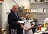 Mayor Kristen Umstattd and Council member Kelly Burk joined McAuliffe on his tour, which included stops at La Lou Bistro, L Gifts & Home Furnishings, Palio’s and the business incubator in town.
