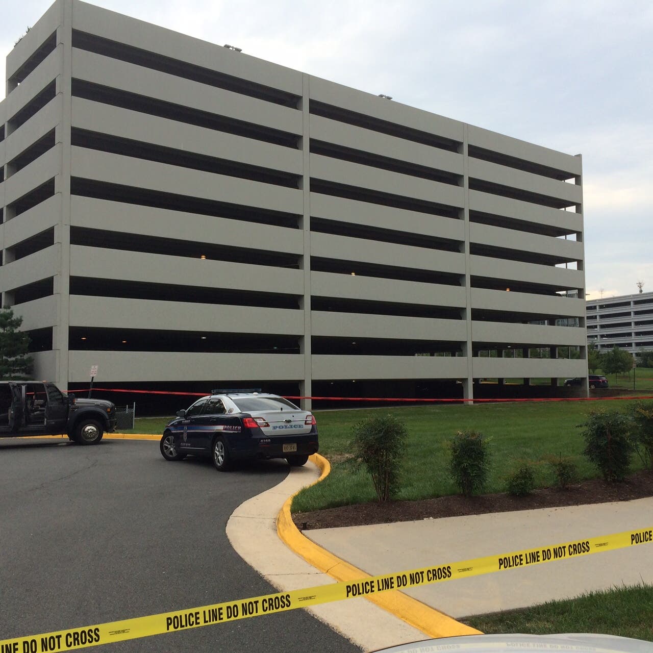 Image: The young woman’s body was found next to this parking garage on Dulles Station Boulevard (FCPD).
