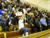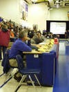 Enthusiastic fans came out to cheer both the Robinson Rams and the West Springfield Spartans. West Springfield students passed out signs in the shape of pop star Justin Bieber's face and held them up when Oakton team members took free shots in an effort to distract them, yelling "Bieber Fever" at the same time.