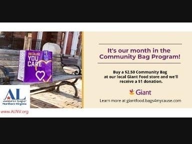 Assistance League of Northern Virginia is honored to be recognized again by Giant Food for its efforts to combat hunger in the area. Through its Weekend Food for Kids program, Assistance League distributes 1680 bags of food and grocery gift cards each month to elementary school students and families in Fairfax County, Prince William County, and Alexandria City. Giant Food has several programs to reduce food insecurity in the community where shoppers live and work. Several Giant Food stores selected the nonprofit last year to benefit from the Bloomin’ 4 Good and Community Bag Programs. Assistance League appreciates that the Giant Food at 8320 Old Keene Mill Road, Springfield, has selected our chapter to benefit from its Community Bag program. Throughout March, for every reusable Community Bag sold, Assistance League of Northern Virginia will receive $1. These reusable tote bags help reduce the use of plastic bags. When you buy a Community Bag at the Springfield Giant, you’ll help yourself, Assistance League, hungry children, and the planet!