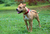 Like most young pups, Petey needs some basic obedience training and work on leash walking. He loves to go on walks, but will pull when he wants to meet someone or another dog, and he wants to meet everyone. He also likes to chase things, especially small critters, so he will need a capable handler and someone who will teach him when chase is safe and appropriate. He can be jumpy when he gets excited, so he will fit best in a home with kids who are out of the toddler stage (7 years or older). He has an excellent temperament, and will make a great family dog.
